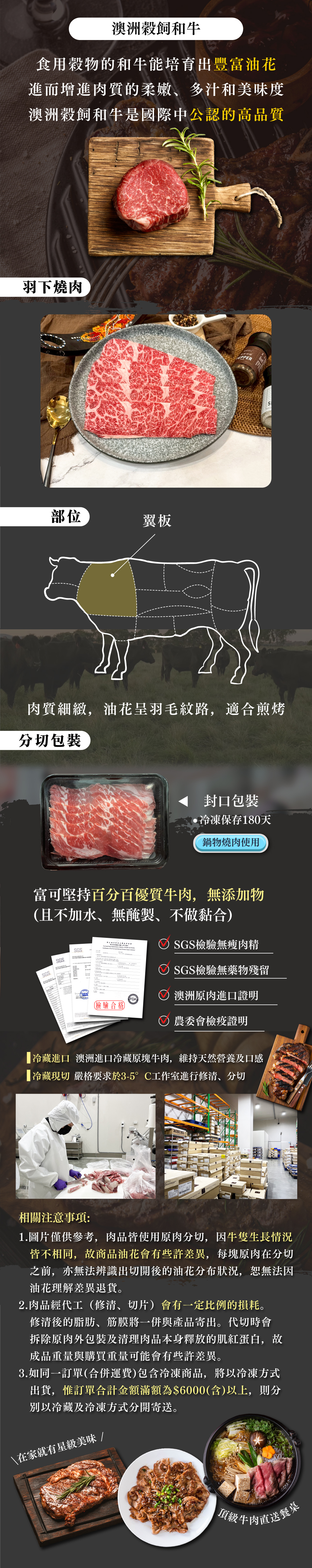 本產品使用澳洲和牛翼板製作,油花美麗中間有少許細筋,肉質香甜有口感